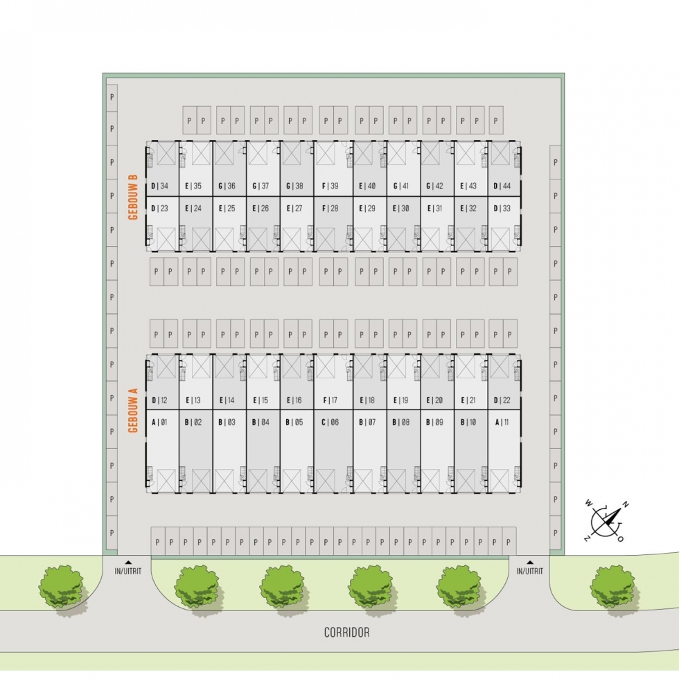 11 units beschikken over een zichtlocatie aan de Corridor, met royale raampartijen en een representatief karakter. Ideaal voor bedrijven die uitstraling en bereikbaarheid willen combineren.